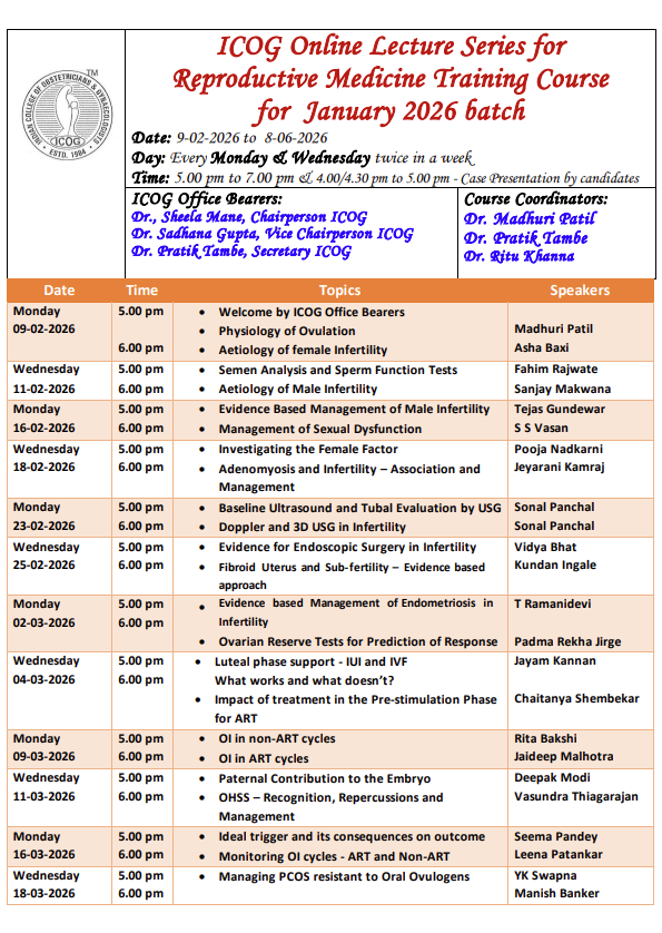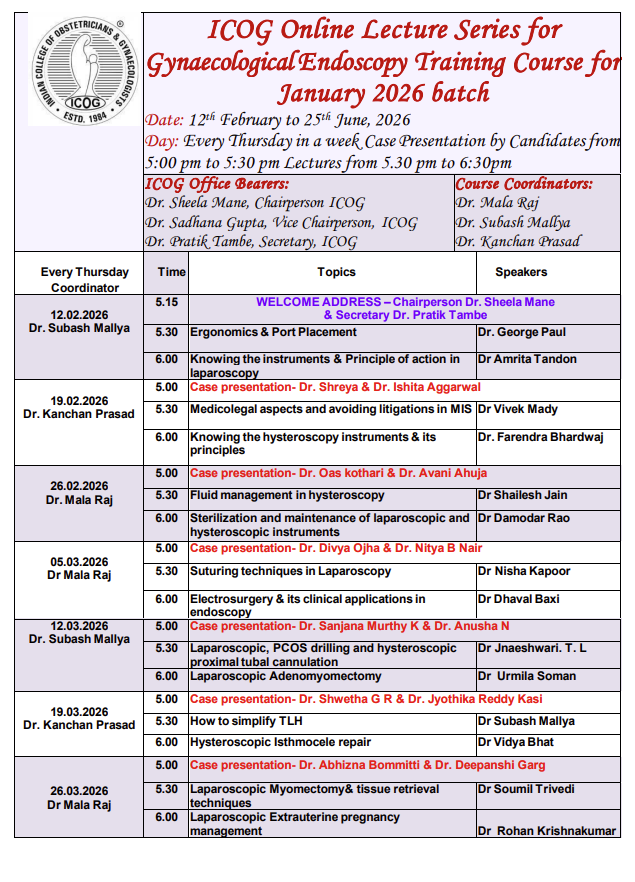 | ICOG Online Centralized Lecture Series in Reproductive Medicine, Endoscopy, Fetal Medicine Program | ||||