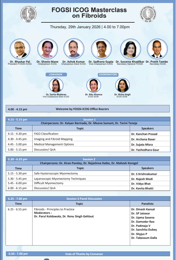 | 2 | FOGSI ICOG Masterclass on Fibroids - 29.01.2026 | https://youtu.be/cKqtO79vDUo |