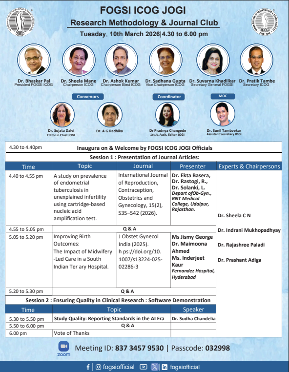 | 5 | FOGSI ICOG Certificate Course on "Endometriosis" - Day 2 - 25.02.2026 | https://youtu.be/ZEwbhbyU-j4 |