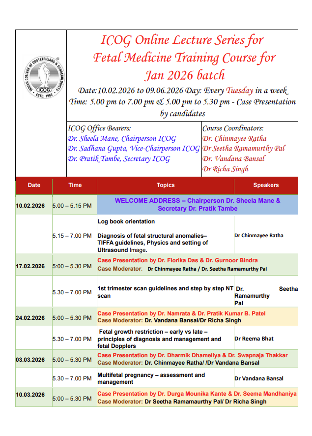 | ICOG Online Centralized Lecture Series in Reproductive Medicine, Endoscopy, Fetal Medicine Program | ||||