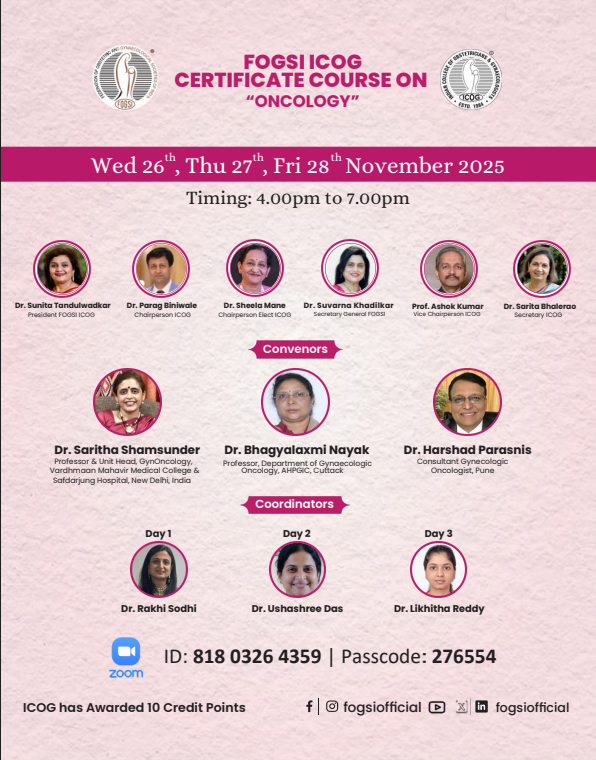 Application form to attend ICOG Online Centralized Lecture Series in Reproductive Medicine, Endoscopy, Fetal Medicine for (March to June) only to attend for outside Candidates who are Post Graduate Ob-Gyn by paying only Rs 10,000/- Click here for Application Form